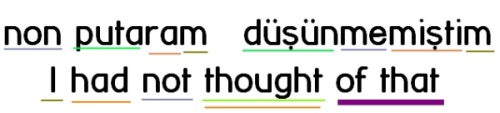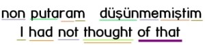 Bu aktarımı Türkçeye “düşünmemiştim” şeklinde çevirdiğimizde, dilin anlam derinliği “üzerine düşünmediğimiz şeyi” üstü örtük bir biçimde bize sunduğundan (Latincesinde de olduğu gibi) İngilizcesinde karşımıza çıkan “of that” gibi bir işarete gerek duymayız, “düşünmemiştim” ifadesini “bunu hiç düşünmemiştim” ya da “bunun böyle olacağını düşünmemiştim” şeklinde okuyabiliriz. Bu da yukarıda da dediğim gibi Türkçenin anlam derinliğine yorumlanabilir, dahası Latinceye -en azından “non putaram” nezdinde onu da aşarak- yakınsadığını gösterebilir.