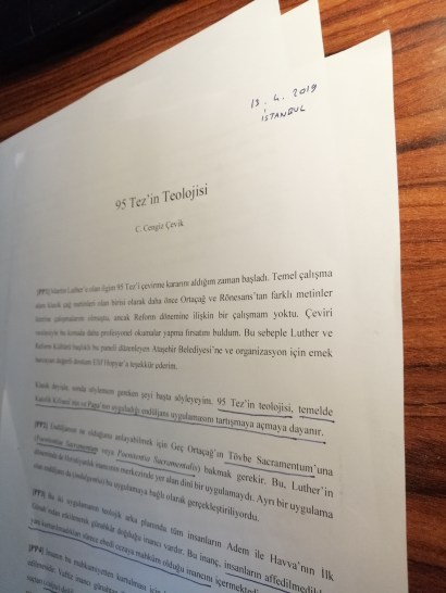 (Konuşma) “95 Tez’in Teolojisi”, Luther ve Reform Kültürü Paneli, İstanbul, Ataşehir Belediyesi, Mustafa Saffet Kültür Merkezi, 13 Nisan 2019.