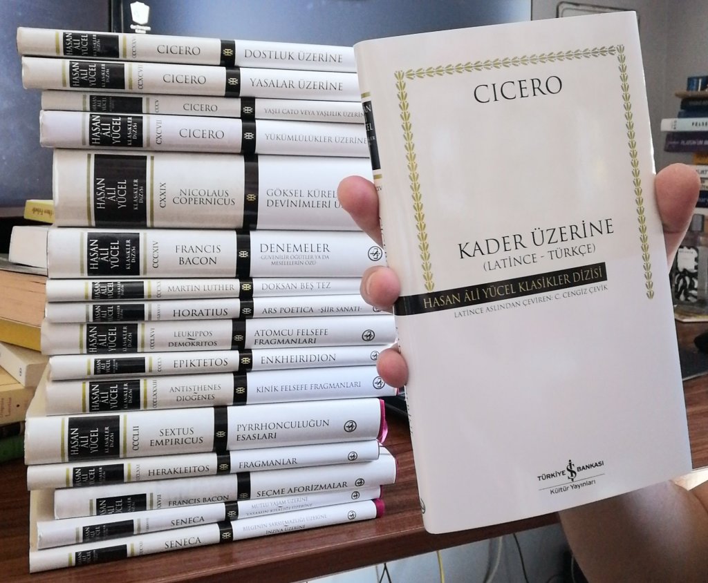 Merhaba Cicero, Kader Üzerine çevirim Türkiye İş Bankası Kültür Yayınları, Hasan Âli Yücel Klasikler Dizisi’nden çıktı. Bu aynı yayınevi ve dizide yer alan on yedinci çevirim. Hayırlı olsun. Şöyle bir fotoğraf çektim. 🙂