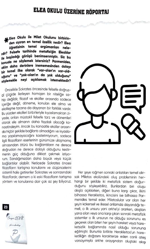 Merhaba değerli dostlar Pharmakon felsefe dergisinin 2021 tarihli 7. sayısında benimle Elea okulu üzerine yapılan bir röportaj bulunmaktadır.