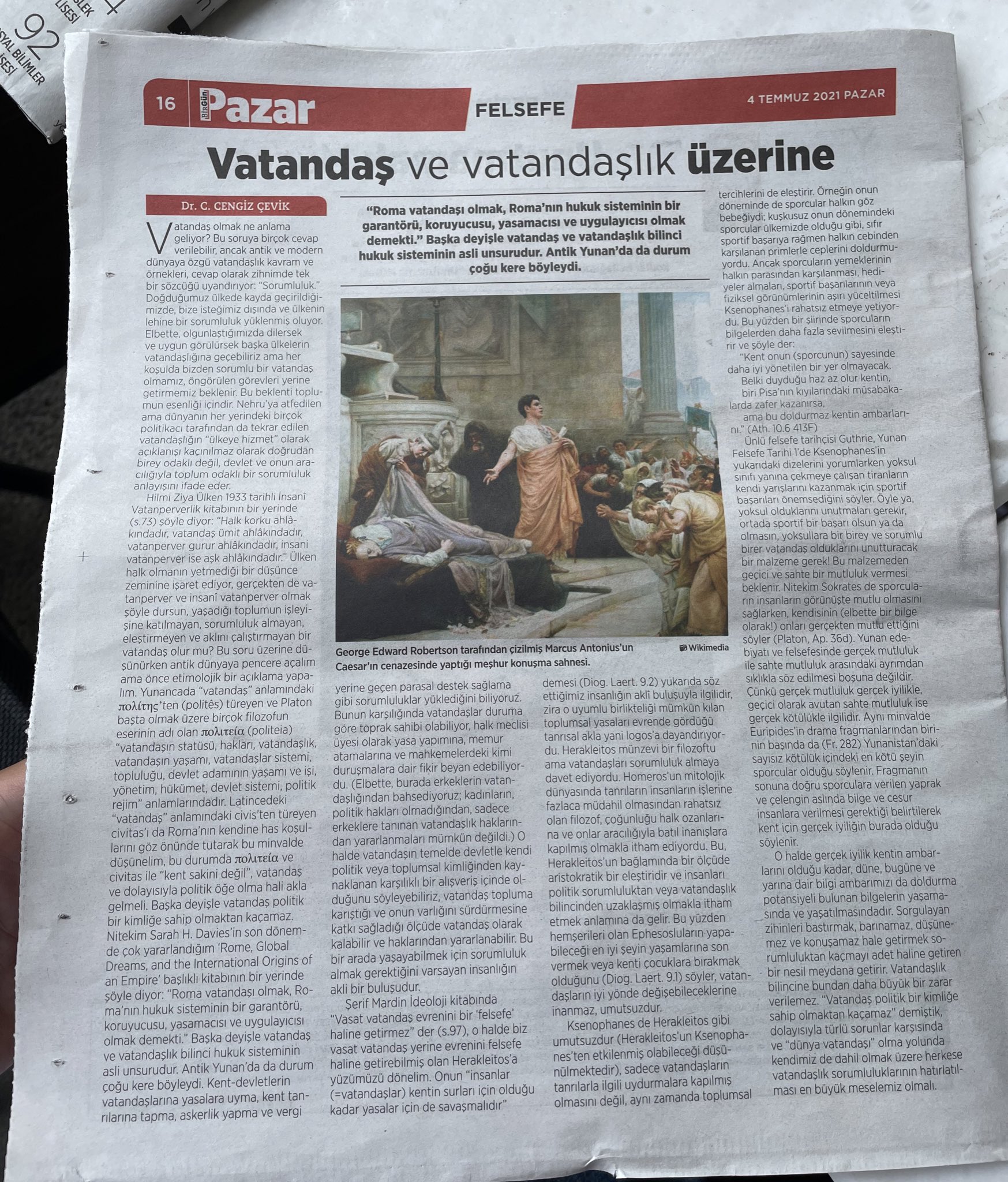 Birgün gazetesinin Birgün Pazar ekinin 747. sayısında (4 Temmuz 2021) yayınlanan “Vatandaş ve Vatandaşlık Üzerine” başlıklı yazımı aşağıda okuyabilirsiniz.