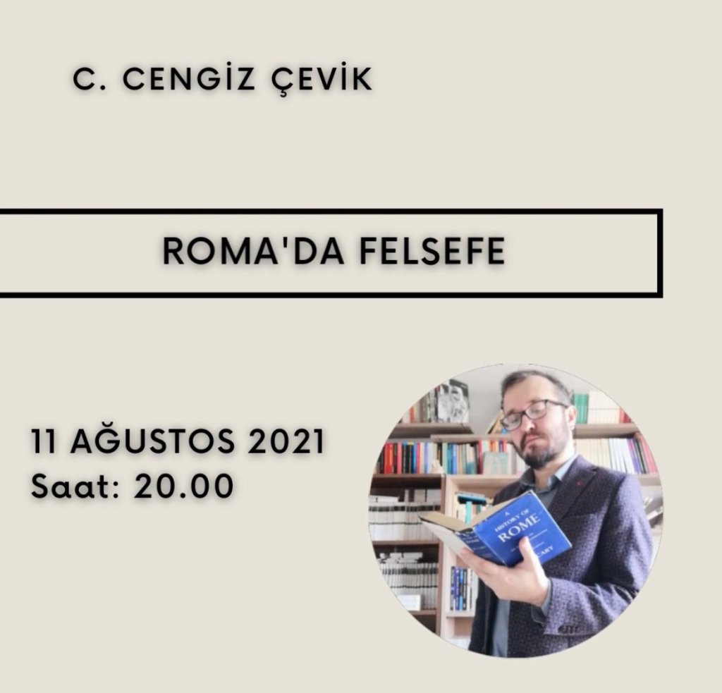 Merhaba değerli dostlar, Küresel Fikir Atölyesi’nde “Roma’da Felsefe” üzerine konuşacağız. Tarih: 11 Ağustos 2021, Saat 20:00 Yer: Zoom (Ücretsiz) Katılım için atölyenin sosyal medya hesaplarından bilgi alınabilir.