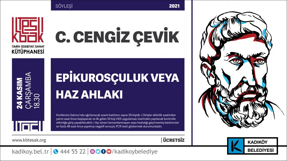 24 Kasım Çarşamba günü, saat 18:30’da “Epikurosçuluk veya Haz Ahlakı” başlıklı konuşmayla Kadıköy Belediyesi, TESAK’ta olacağım. İlgilenen dostları bekleriz.