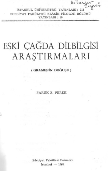 Eski Çağda Dilbilgisi Araştırmaları. Gramerin Doğuşu (Faruk Z. Perek)