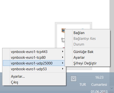 8- Bu ikona sağ tıklayıp “udp2500” ya da “udp53″e tıklayın: