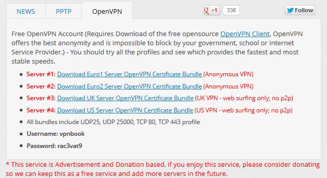 3- Yükleme bitince uygulamayı çalıştırmanıza gerek yok. http://www.vpnbook.com‘a girin ve aşağıdaki Openvpn sekmesindeki server paketlerinden birini indirin:
